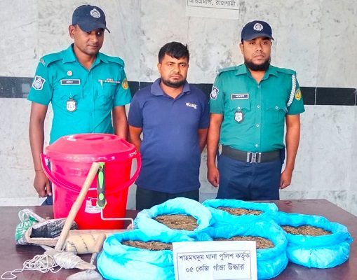 এসময় শাহমখদুম থানার অফিসার ইনচার্জ মো: ইসমাইল হোসেনের দিকনির্দেশনায় এসআই মো: আব্দুল মতিন ও তাঁর টি রাত সোয়া ৯ টায় শাহমখদুম থানার নওদাপাড়া আমচত্বর মোড়ে চেকপোস্ট স্থাপন করে সন্দেহজনক যানবাহন তল্লাশী করছিলো। কয়েকটি বাস তল্লাশী করার পর রাত ১০ টায় চাঁপাইনবাবগঞ্জ গামী একটি বাস তল্লাশী করে বাসের বক্সে রাখা একটি বালতির ভিতর থেকে ৫ কেজি গাঁজা উদ্ধার করা এবং রাজ মিস্ত্রি ও রঙ মিস্ত্রির কাজে ব্যবহৃত কিছু মালামাল জব্দ করা হয় । এরপর সেই বালতি ও মিস্ত্রির ব্যবহৃত মালামালের বস্তার টোকেন মিলিয়ে যাত্রীবেসে থাকা আসামি মাইনুল ইসলামকে গ্রেপ্তার করে।