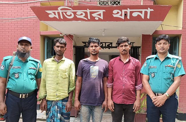 গ্রেপ্তারকৃত আসামিরা হলেন মো: জহুরুল হোসেন রেন্টু(৩৫), মো: ইসমাইল হোসেন (৩০) ও মো: রাসেল (৩২)। জহুরুল রাজশাহী মহানগরীর চন্দ্রিমা থানার মেহেরচন্ডী কড়ইতলার মৃত খয়রাত আলীর ছেলে, ইসমাইল হোসেন রাজশাহী জেলার গোদাগাড়ী থানার মাছপাড়ার মো: সারোয়ার হোসেনে ছেলে ও মো: রাসেল রাজশাহী মহানগরীর চন্দ্রিমা থানার ভদ্রা জামালপুরের মো: রফিকুল ইসলামের ছেলে।