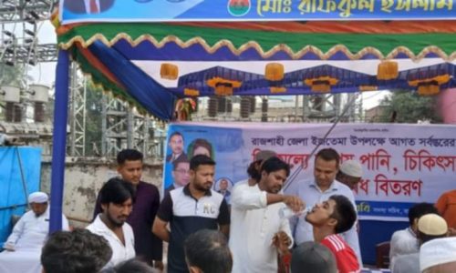 রাজশাহীতে যুবদলের উদ্যোগে ইজতেমায় আগত মুসল্লিদের পানি ও চিকিৎসা সেবা প্রদান