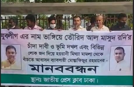 পদ প্রত্যাশী সাবেক যুবলীগ নেতা রনি’র বিরুদ্ধে চাঁদা দাবি ও ভুমি দখলের অভিযোগে মানববন্ধন