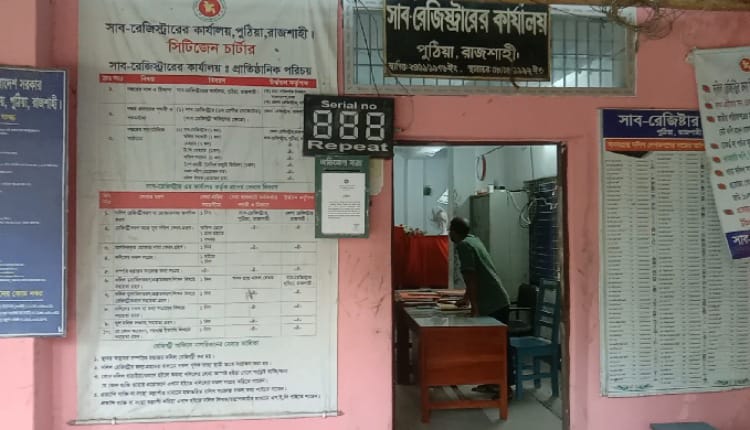 বর্তমান রাজনৈতিক প্রেক্ষাপটে রাজশাহীর পুঠিয়া উপজেলার সাব-রেজিস্টার অফিস চত্তরে চলছে ষড়যন্ত্র ও দখলদারত্বের দৌরাত্ম। ক্ষমতার পালা বদলের সাথে সাথে অরাজনৈতিক প্রতিষ্ঠান সাব-রেজিস্টার অফিসে রাজনৈতিক প্রভাব বিস্তারে বিএনপির ট্যাগ লাগিয়ে বাবুল,উজ্জল এবং টিপু সুবিধাবাদী অসাধু চক্র ইতোমধ্যে তাঁদের আওতায় নিয়েছেন।