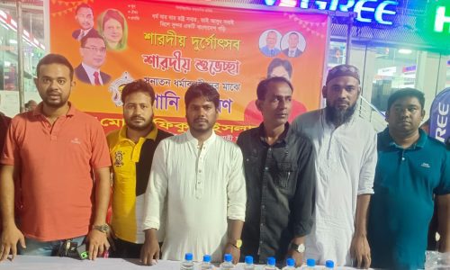 প্রতিমা বিসর্জনের যাত্রীদের মাঝে যুবদলের পানি বিতরণ