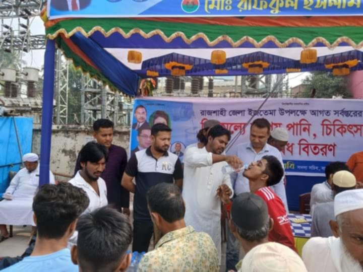 ১৪ নভেম্বর বৃহষ্পতিবার ফজরের নামাজের পর থেকে ইজতেমা শুরু হয়। সকাল ১০ ঘটিকা থেকে রাজশাহী মহানগরের যুবদলের কর্মীরা রাজশাহী মহানগর যুবদলের সদস্য সচিব মোঃ রফিকুল ইসলাম রবির নেতৃত্বে ইজতেমায় আগত মুসল্লিদের বিশুদ্ধ পানি ও প্রাথমিক চিকিৎসা প্রদানের আয়োজন করে। রাজশাহী মহানগরীর কেন্দ্রীয় শাহ মখদুম (রহ.) ঈদগাহে মেইন গেটের পাশে বুথ করে সেবা প্রদান শুরু করে যুবদল কর্মীরা। এই আয়োজন ১৬ ইং তারিখ সকাল ১০ টায় আখেরি মোনাজাতের মাধ্যমে ইজতেমা ও সেবা প্রদান কার্যক্রম শেষ হবে।