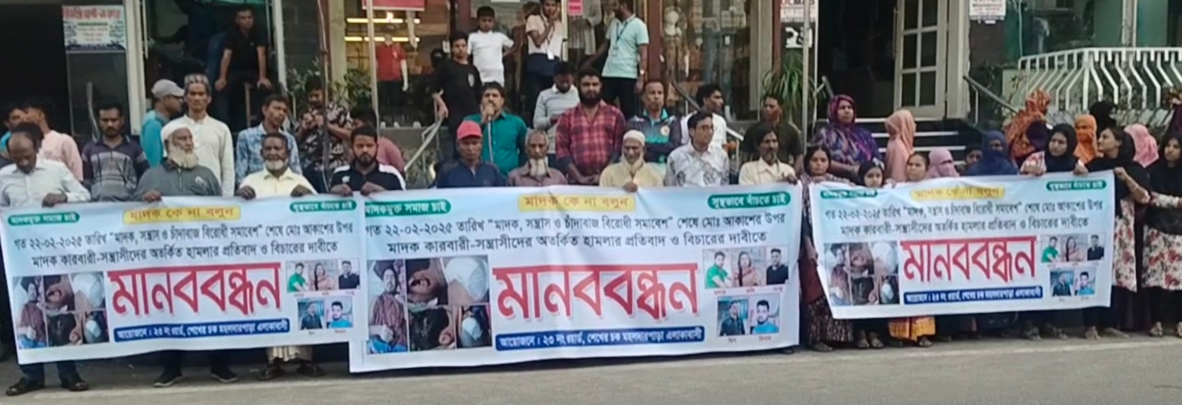 তারা জানান, মাদক ব্যবসা বন্ধের দাবিতে গত ২২ ফেব্রুয়ারি এলাকাবাসী এক সমাবেশের আয়োজন করেছিল। তবে সমাবেশ শেষে ফেরার পথে চিহ্নিত মাদক কারবারি ডলার, কলি, সঞ্জু, দ্বীপ ও বিশাল ধারালো অস্ত্র নিয়ে আকাশ নামের এক ব্যক্তির ওপর হামলা চালায়। এ সময় তাকে হত্যার উদ্দেশ্যে মাথায় আঘাত করা হয়, যার ফলে তিনি গুরুতর আহত হয়ে এখনো চিকিৎসাধীন রয়েছেন।