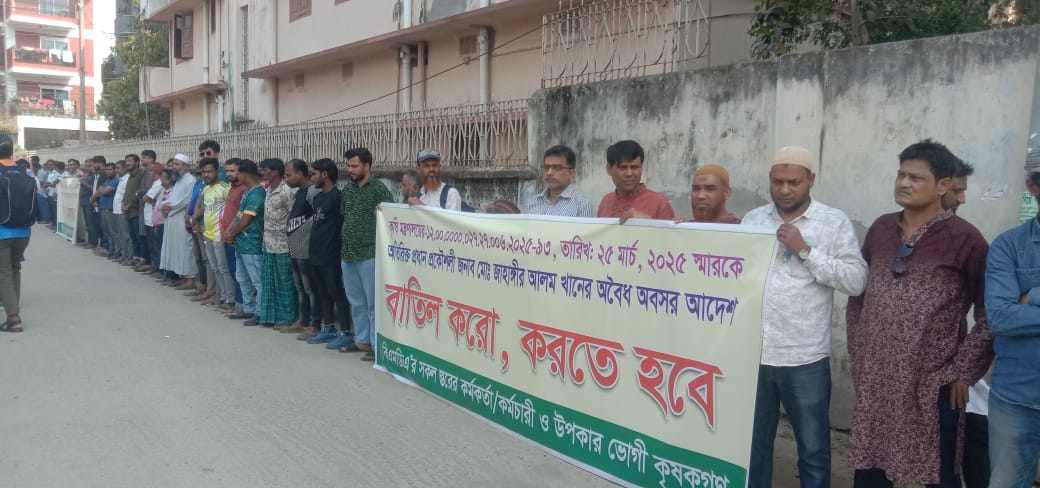 বরেন্দ্র বহুমুখী উন্নয়ন কর্তৃপক্ষের (বিএমডিএ) নির্বাহী পরিচালকের চেয়ার দখল করায় তত্ত্বাবধায়ক প্রকৌশলী জাহাঙ্গীর আলম খানকে অবসরে পাঠিয়েছে কৃষি মন্ত্রণালয়। মঙ্গলবার সন্ধ্যায় কৃষি মন্ত্রণালয়ের এক প্রজ্ঞাপনে এ তথ্য নিশ্চিত করা হয়েছে। প্রজ্ঞাপনে স্বাক্ষর করেছেন কৃষি সচিব এমদাদ উল্লাহ মিয়ান। সরকারের এ সিদ্ধান্তের প্রতিবাদে কর্মকর্তা-কর্মচারীদের একাংশকে মাঠে নামিয়েছেন চেয়ারম্যান ড. আসাদুজ্জামান। তারা বুধবার দুপুরে মানববন্ধন করেছেন বিএমডিএ কার্যালয়ের সামনে। পরে পুলিশ আসলে তারা চলে যায়।