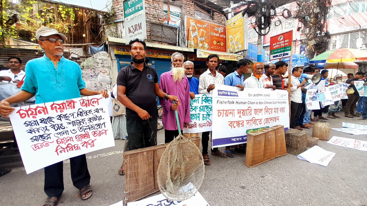 বরেন্দ্র অঞ্চলসহ সারাদেশে চায়না দুয়ারি জালসহ ক্ষতিকর সব বিদেশি জাল সম্পূর্ণ নিষিদ্ধ ও বাজেয়াপ্ত করতে হবে।