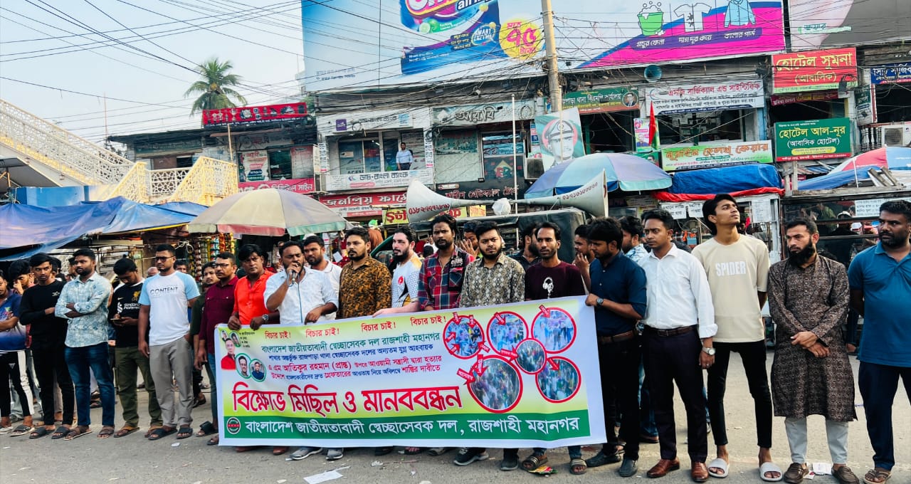 স্বেচ্ছাসেবক দল বলছে—হামলাকারীরা দ্রুত গ্রেফতার না হলে রাজশাহীতে আরও কঠোর কর্মসূচি দেওয়া হবে।