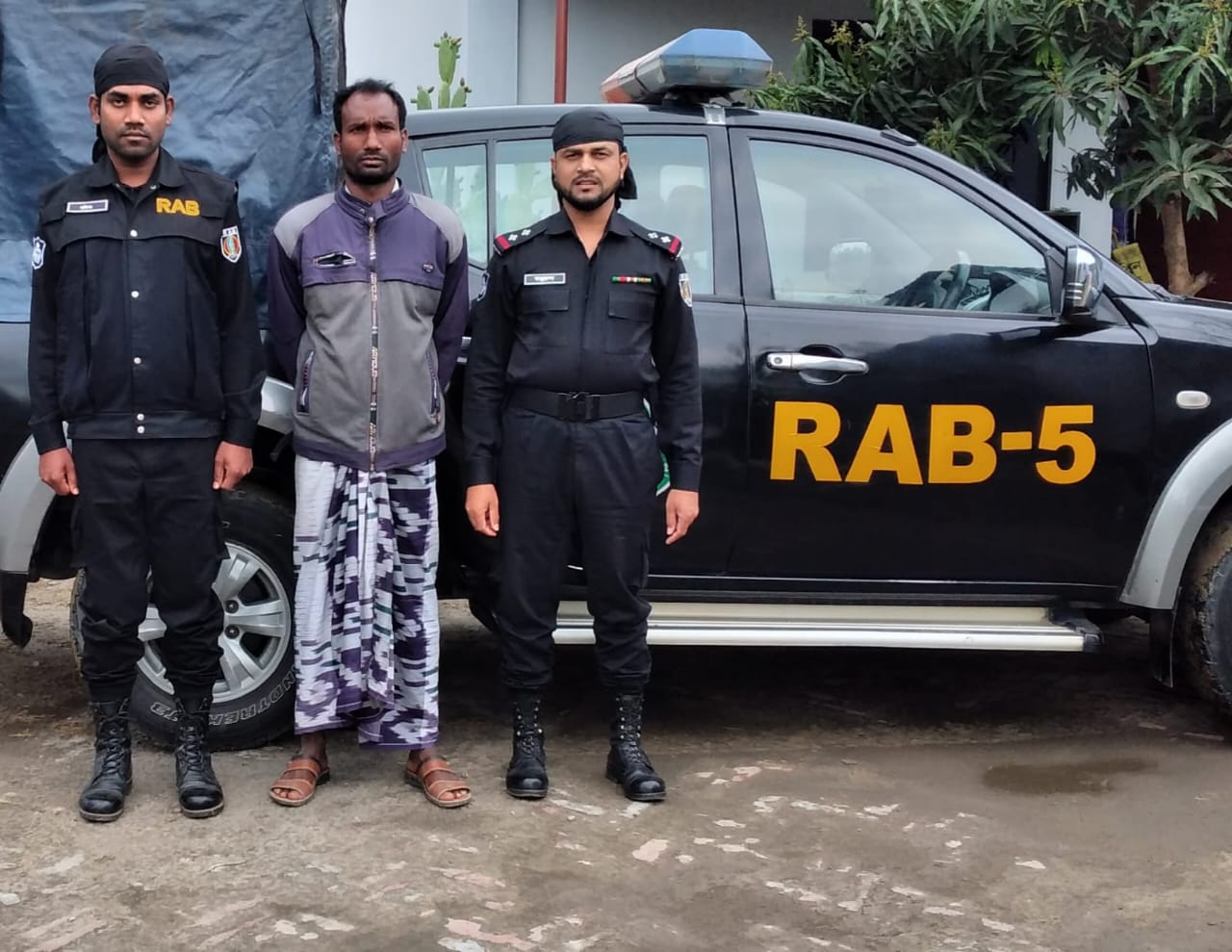 এরই ধারাবাহিকতায় সিপিসি-১, চাঁপাইনবাবগঞ্জ ক্যাম্প, র‌্যাব-৫, রাজশাহীর একটি আভিযানিক দল ২১ ফেব্রুয়ারী ২০২৪ ইং গোয়েন্দা তথ্যের ভিত্তিতে, চাঁপাইনবাবগঞ্জ জেলার শিবগঞ্জ থানাধীন শ্যামপুর ইউপির গোপালনগর হুদমাপাড়া এলাকায় অভিযান পরিচালনা করে ১। মোঃ জেন্টু (৩৫),পিতা- মৃত আজাহার আলী, মাতা-মোছাঃ কেতামন বিবি,সাং- গোপাল নগর হুদমাপাড়া,থানা- শিবগঞ্জ, জেলা- চাঁপাইনবাবগঞ্জকে ৫০ (পঞ্চাশ)গ্রাম মাদকদ্রব্য গাঁজা সহ হাতেনাতে গ্রেফতার করা হয়।